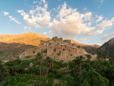 After breakfast, continue your overland adventure with a first stop at Al Malad Castle, located in the historic village of Al Malad. This dual fortress, perched on a hill along the commercial route to Asir, was built by two brothers over four centuries ago. Originally designed for military defence, it also served as a storage site for provisions.