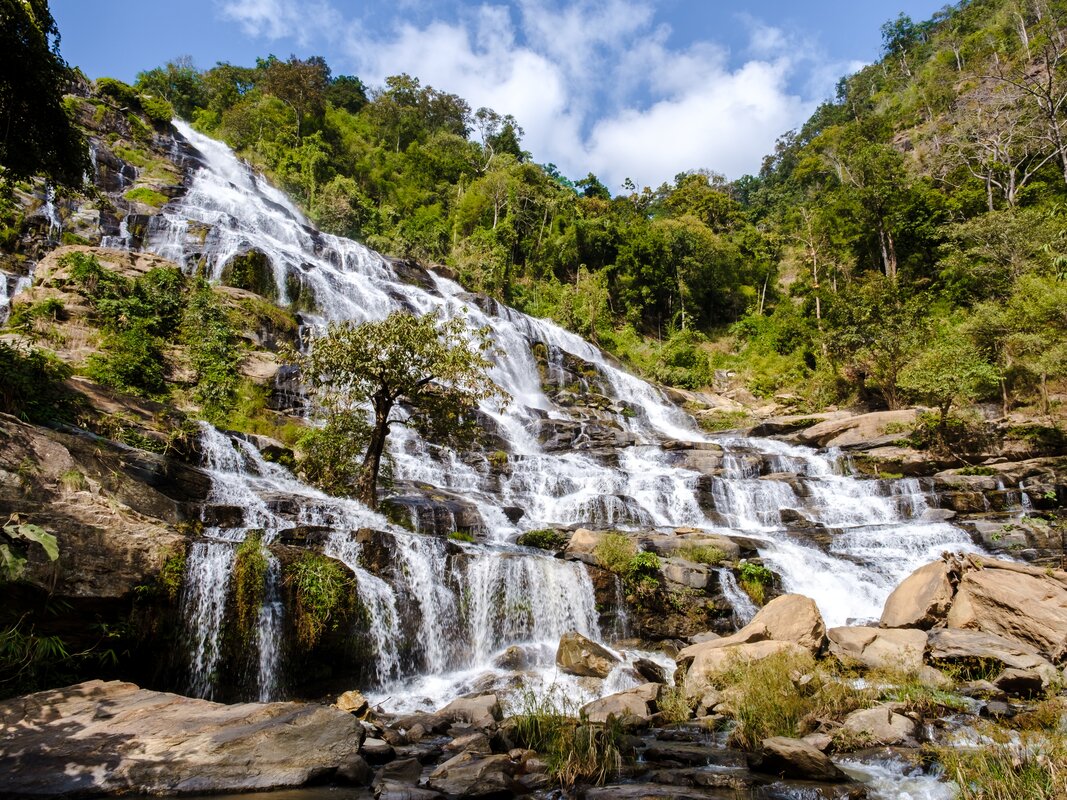 Fly north to Chiang Rai to marvel at the surreal White Temple, explore the Doi Tung Royal Villa, and cruise through the legendary Golden Triangle where Thailand, Laos, and Myanmar meet. Continue to Chiang Mai to trek through hill tribe villages, discover caves, and hike in Doi Suthep-Pui and Doi Inthanon National Parks, where waterfalls, lush forests, and sweeping mountain views await. Visit revered temples, royal pagodas, and cultural centres that reveal northern Thailand’s spiritual and artistic heritage.