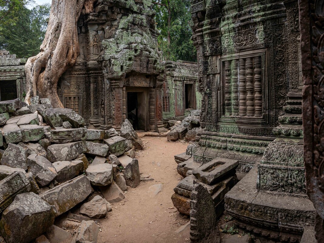 Your journey continues to the atmospheric Ta Prohm Temple, one of Cambodia’s most beloved sites. Left largely in its natural state, Ta Prohm is embraced by towering trees and jungle roots, creating a mystical and unforgettable scene.