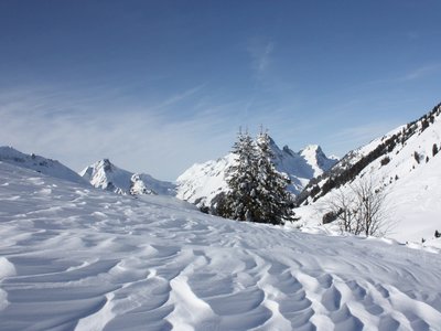 You take the free bus to Griessau to start this easy walk. On reaching a plague chapel you'll climb gently along the High Route, then descend to Grünau. After lunch it's back through the snow-covered meadows to Bach.