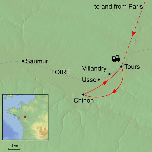 We travel to Paris Gare du Nord by Eurostar from London St Pancras International. From here we have a transfer vehicle to take us Paris Gare Montparnasse and then take the TGV direct to Tours. We will then have an hour’s transfer by private coach from Tours train station to Chinon. Some dates may arrive into Saint-Pierre-Des-Corps station on the outskirts of Tours.