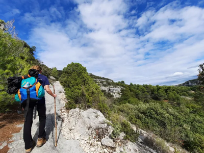 The first stage of the GR91 trail begins with a steep uphill climb during the initial kilometers, taking you through a stunning forest. You'll be greeted by the signature scents of Provence—pine, thyme, rosemary, and more. After a long descent, the picturesque village of Le Beaucet reveals itself, nestled against a dramatic rock face. The trail then leads you past a deep gorge and into serene landscapes dotted with occasional houses and vineyards. As you continue, let the fragrant air of Provence guide you toward the enchanting village of Venasque—officially recognized as one of the most beautiful villages in France—offering a truly peaceful atmosphere.