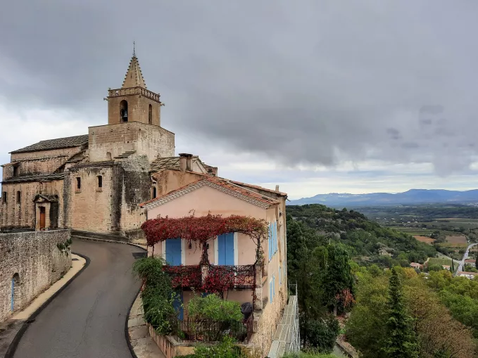 Today, you depart the Venasque region and set out toward the stunning village of Gordes, another gem officially recognized as one of the most beautiful villages of France Your path winds along stony trails through low-lying Mediterranean vegetation, gradually climbing to the limestone cliffs of the Rochers Rouges (elevation 662 m). At the summit, breath taking panoramic views await—stretching across the Dentelles de Montmirail, Mont Ventoux, and the Rhine Valley.