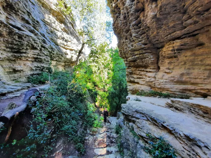 Embark on a delightful walking route today, starting in Gordes and traversing the breath taking Gorges de la Veroncle, renowned for its steep, jagged cliffs—one of the most scenic hikes in the Luberon. Descend to the gorge's bottom, passing by ancient mills, then ascend, encountering challenging sections with ladders and cables. An alternative route to bypass the gorges is available, following a marked downhill trail. Alternative: 11.8 km, 414m ascent, 414m descent