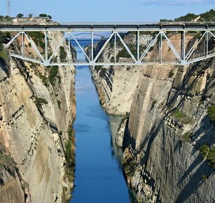 Stand on the bridge and look down at the spectacular man made canal which joins the Ionian Sea to the Aegean Sea.
