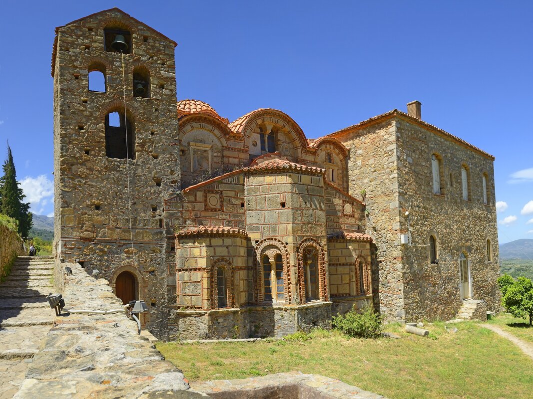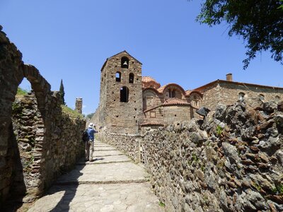 The day starts with a walk from Mystra village through a verdant gorge to the site of Byzantine Mystras with its castle (approx. 1.5 hours). The site usually takes 2 hours to explore and you find a secluded spot for a picnic there. There are panoramic views on your walk through Mystras site.