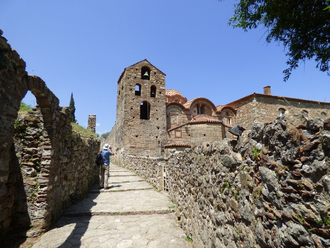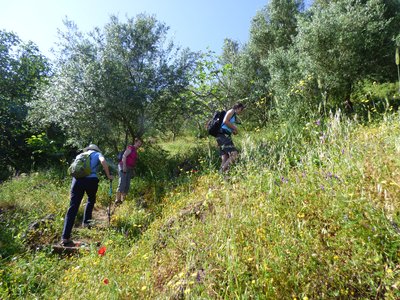 The day starts with a walk from Mystra village through a verdant gorge to the site of Byzantine Mystras with its castle (approx. 1.5 hours). The site usually takes 2 hours to explore and you find a secluded spot for a picnic there. There are abundant flowers and panoramic views on your walk through Mystras site.