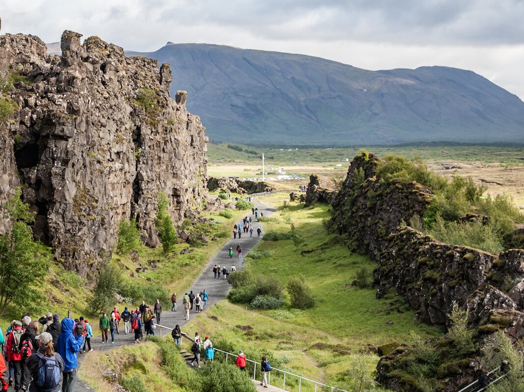 The Thingvellir national park is extraordinary! There is nowhere else on earth where you can walk along the mid Atlantic rift between two tectonic plates, all above sea level. On one side you’ll see the enormous north American tectonic plate and on the other side of the rift is the protruding Eurasian tectonic plate.
