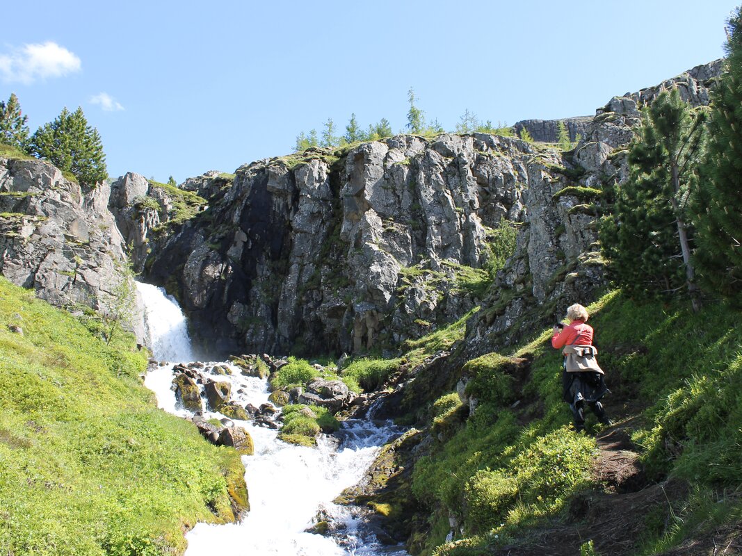 From the port, walk south through lush meadows and beside a tranquil riverbank surrounded by snow capped mountains. The trail takes you past glorious waterfalls in Seydisfjörður and you may pass an arctic tern nesting area, also known locally as the sea swallow.