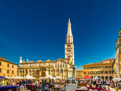 Now to the vibrant city of Modena! With a local guide leading the way, immerse yourself in the lively atmosphere of Modena's famous market. Witness the hustle and bustle as locals gather to select fresh produce and regional specialties. As you traverse the town, marvel at the architectural splendor of the Main Square, where the striking Duomo takes centre stage.