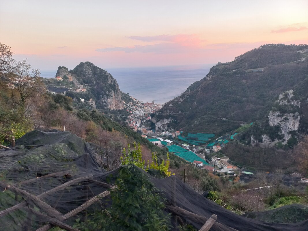 Option 1 - A shorter but more demanding walk via Madonna dei Fuondi Santuary follows inland paths through Valle delle Ferriere park. This walk leaves plenty of time in the afternoon to explore Amalfi at your leisure or take the local bus up to Ravello, a charming town well worth a visit : 5 hours, 6 mi, 1000m ascent, 990m descent