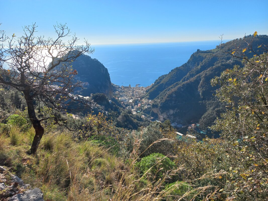 Option 2 - For those seeking more of a challenge, the longer walk offers spectacular views of the Bay of Salerno and the dramatic cliffs of the Amalfi Coast: 5 hours, 7 mi, 790m ascent, 770m descent