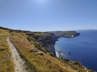 Today you start your walk from Gharb. A transfer is arranged to drop you at the start of the walk. The walk from Gharb to the coast (Wied il Għasri) runs on asphalt roads and country roads passing by the Ta Pinu abbey. Then you continue along the coast to Dwerja Bay with extremely panoramic views of the cliff. Here you can opt to take a short boat trip in Dwerja Bay (cash only) to visit the grottos. Finish your walk at Dwejra Bay, take some time to enjoy a beautiful sunset before heading back to Gharb by local bus.