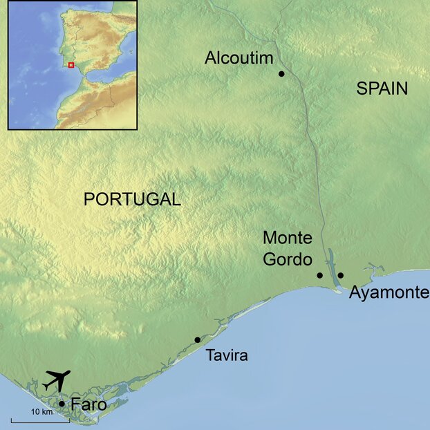Fly from London to Faro airport on Portugal's Algarve coast. Transfers from Faro Airport to our hotel in Monte Gordo will be by road and will take approximately one hour.