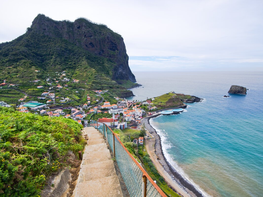 Funchal, with its dramatic mountainous lush green backdrop, is decorated with white and black mosaic footpaths, picturesque colourful squares filled with history and terracotta roofed houses dot the mountainside, making for an attractive city. Its indoor market is a must see, along with its pretty little narrow backstreets filled with shops and restaurants. The cable car whisks you high above Funchal for fantastic panoramic views of the rolling city. Funchal is the ideal centre for exploring the more challenging walks of Madeira.