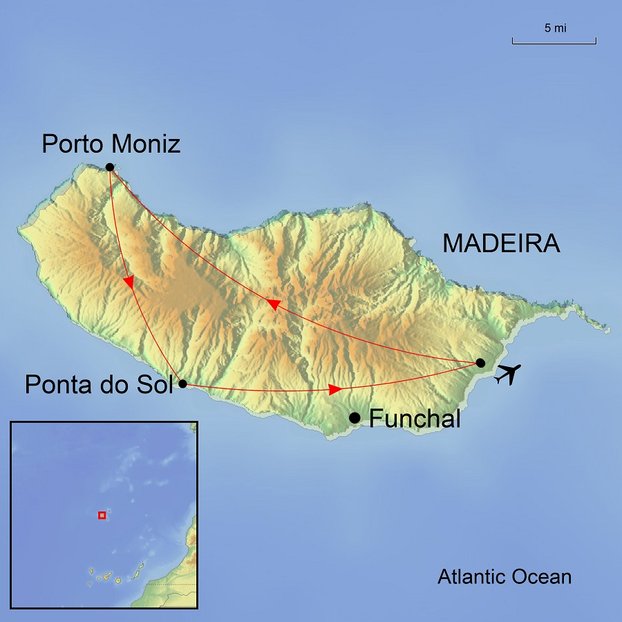 Return flights are from London to Funchal Airport. Travel in Madeira will be by private coach and the approximate travel times are as follows:
