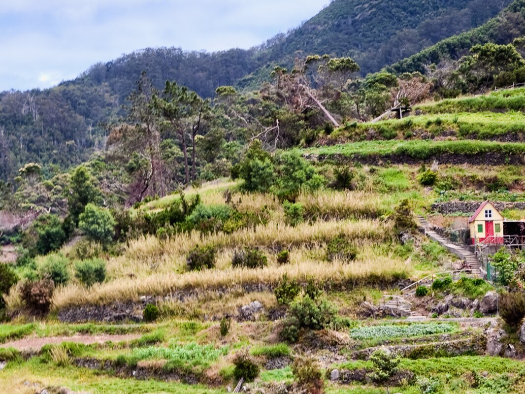 Set out on an invigorating uphill walk through a picturesque woodland, commencing from Achadas da Cruz, and eventually reaching a tranquil levada. The path is narrow at times, but well protected. The levada itself, once harnessed to power mills, often flows briskly. During your journey, prepare to be captivated by the breathtaking panoramic views of the dramatic coastline and the steep, terraced hillsides, which have been meticulously cultivated over the years.
