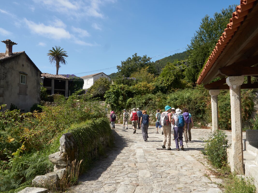 Dem-Orbacém (Grade 4): Discover the enchanting lower slopes of the Serra d'Agra, unveiling villages gracefully nestled along a spring line. Though the rugged slopes of the Serra d'Agra loom above, our winding route guides us through the verdant fields and vibrant villages adorning the gentle lower slopes. Following a delightful picnic lunch, descend once more into the undulating valley of the River Ancora. Here, the river becomes your companion once again, cascading through rock pools, flowing beneath ancient bridges, and serenely winding its way through picturesque fields.