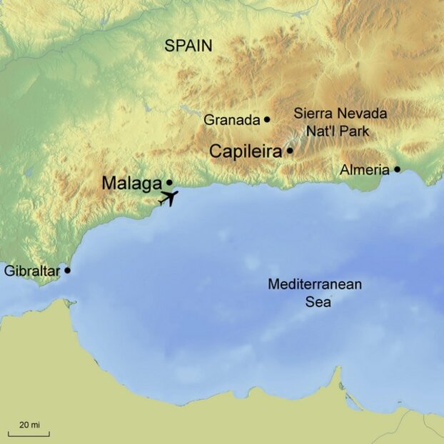 Meet at Hotel Finca los Llanos, a beautifully located property on the edge of the village of Capileira. Settle in and learn about your upcoming walks at this evening's briefing at 19:30. Please be aware that dinners in Spain are taken later than in the UK, expect to sit down for dinner between 8-8:30pm.