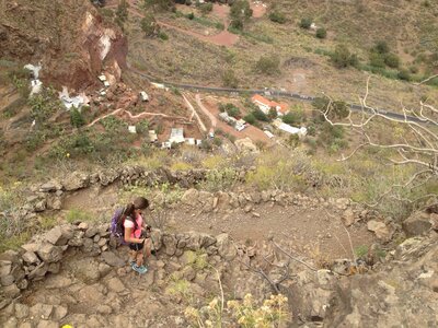 Your descent down to Puerto de las Nieves follows a narrow path with sheer drops. NOTE: if you really don’t like heights, you may feel uncomfortable on the last section. Should this happen, just turn around at the Mirador and retrace your steps back to San Pedro, then take a bus or taxi back to Puerto de las Nieves.
