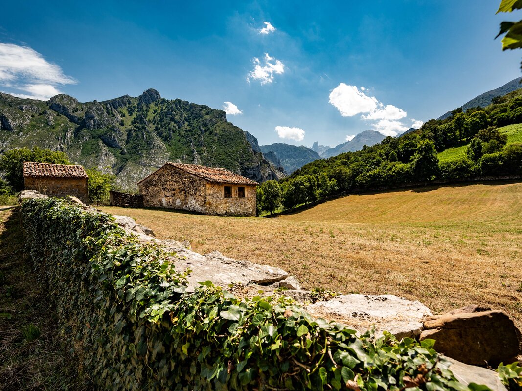 Bulnes to Sotres: You take private transport to Poncebos where you will take the funicular that travels through a tunnel carved into the rock up to Bulnes. You will have time to explore the picturesque village known for its traditional stone houses and stunning mountain backdrop. You start your walk from here heading towards the Invernales del Texu through meadows before ending the walk in Sotres, the highest village in the Picos de Europa. In the afternoon on arrival back into Cabrales you will have the chance to visit the cheese caves which showcases the present and past of Cabrales cheese through a guided tour, the first half of the tour is inside the cave where the production process takes place and the second half is a tasting of the cheese.