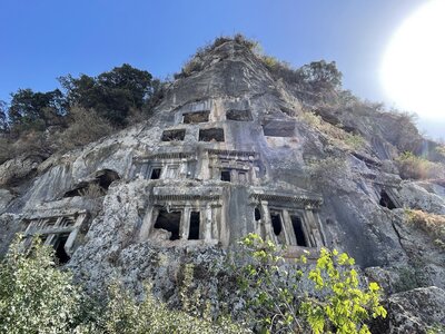 Depart Antalya and travel to Fethiye along Turkey's most turquoise coast, stopping for lunch at a charming Turkish restaurant on the way. Upon reaching the heart of traditional Fethiye, your exploration begins by winding through cobbled streets, unveiling the town's rich history. Ascend to discover ancient Roman and Lycian tombs, perched on the hillsides, leaing up to an old Muslim cemetery. From here the transfer takes you to your hotel in Fethiye.
