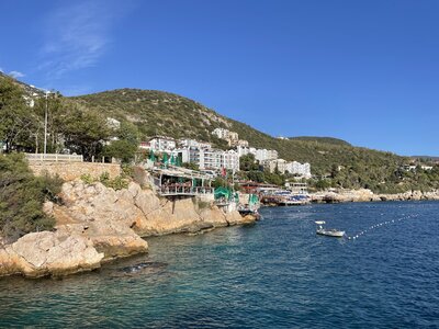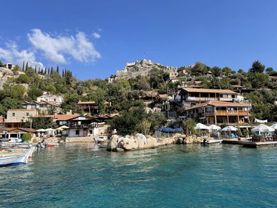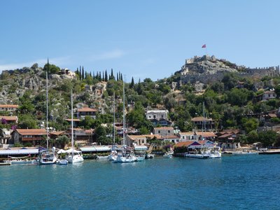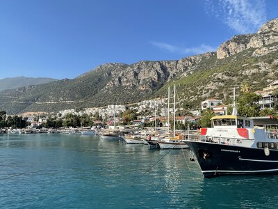Kas is a quaint and picturesque town situated in Southern Antalolia, known as the Pearl of the Mediterranean – where history meets nature and green meets blue. It is sheltered by the bay and at the foot of a steep south facing hillside. There is a marina, harbour and a small beach. There is also an ancient theatre and a nearby ruined Greek temple along with many tombs and other antiques. The rock tombs in the mountains are sometimes illuminated at night, making for an impressive sight!