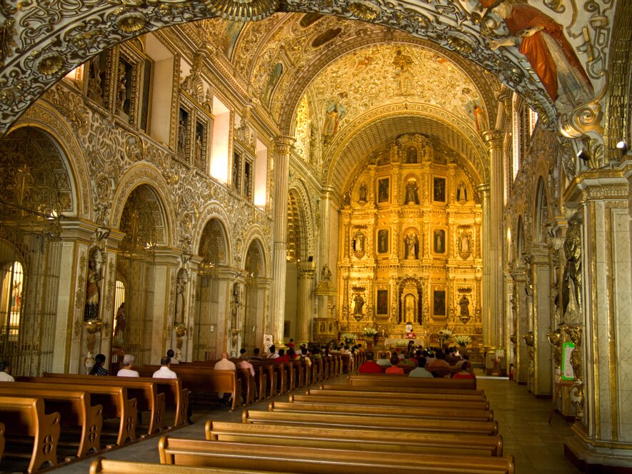 Back in Puebla we visit the first library on the American continent the Biblioteca Palafoxiana in the House of Culture of Puebla. The historic monument, today an UNESCO World Documentary Heritage, contains more than 40,000 volumes some of which date back to the 15th century.