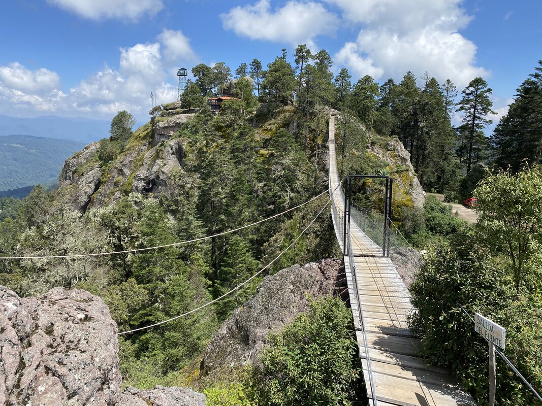 On arrival into Benito Juarez you can drive up to a viewpoint above town. This offers stunning views all the way back to Oaxaca. Anyone who choses can cross the suspension bridge pictured in the photo gallery. There is no need to if you prefer not. The walk then meanders gently down crossing agricultural land and forest glades to a river valley where you can take a short stop. From here you climb up a good path to our accommodation in La Neveria. Hopefully you will have time for a stroll around the village before dinner.