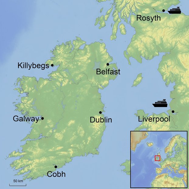 Not unlike the first settlers to Ireland we make landfall in the same way, by ship. However, instead of horse and cart, we take a private coach to the fishing village of Ballycotton on the outskirts of the town. Ballycotton is a re-settlement of the original village which now lies underwater. Walk along the Ballycotton cliffs, 5 miles of unbelievable views and wildlife. Time permitting, we return to the city of Cork for some free time to explore the English Market, St Finbarr’s Cathedral and the old part of the city.