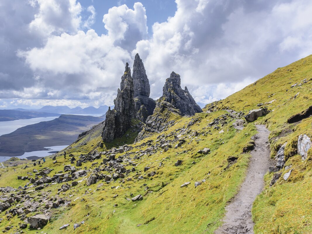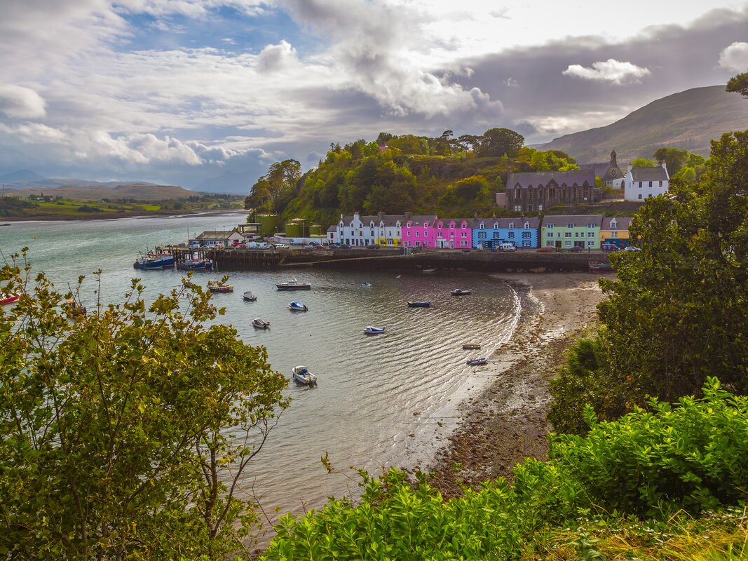 Portree, the largest and capital town of the Isle of Skye is vastly different to other capital cities. Nestled at the base of rolling rock outcropped hills we go into the wilderness to the Old Man of Storr in the north of the island. Visible for miles the rock pinnacle 'the Old Man' is one of the most photographed landscapes in Scotland.