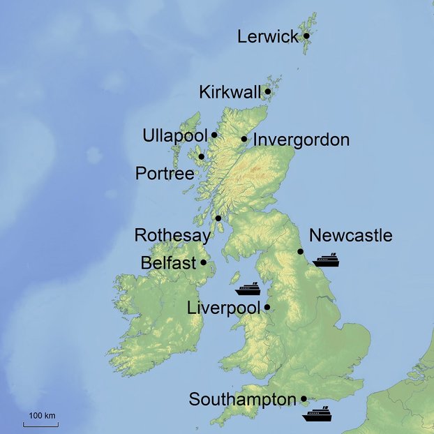 Our final port of call is Lerwick in the Shetland Islands, the northernmost outpost of the British Isles. With a local guide, we journey to St Ninian’s Isle, known for its breath-taking scenery and abundant birdlife - an ideal spot for nature enthusiasts. We then enjoy one last day at sea before returning to our home port.