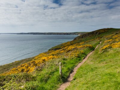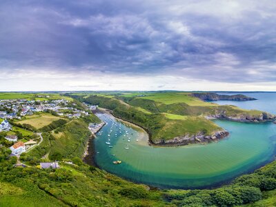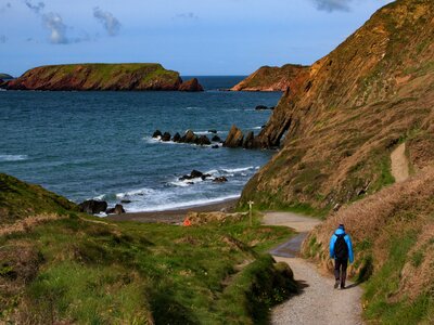 Leaving Broad Haven behind, the path climbs and is easier going once high on the cliffs. You will pass the small hamlet of Druidston, old mine workings, and an impressive, eco futuristic house-shaped like an oval eye. Reaching Nolton Haven, a small inlet, with the Mariner’s Inn for a break we head on steeply up before descending to the sandy 2 mile Newgale Beach. From here the landscape is easier, over grassy slopes and cliffs emerging at the old fishing village of Solva with its Lime Kilns and The Harbour Inn right on the water's edge.